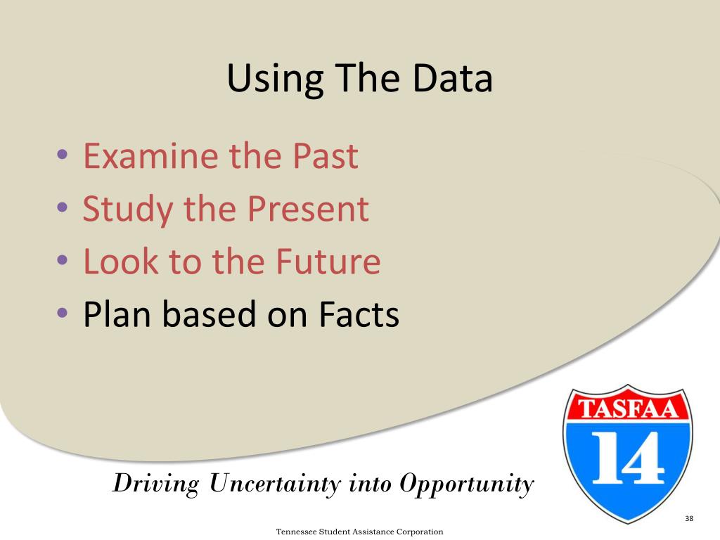 Using The Data • Examine the Past • Study the Present • Look to the Future • Plan based on Facts 38 Tennessee Student Assistance Corporation