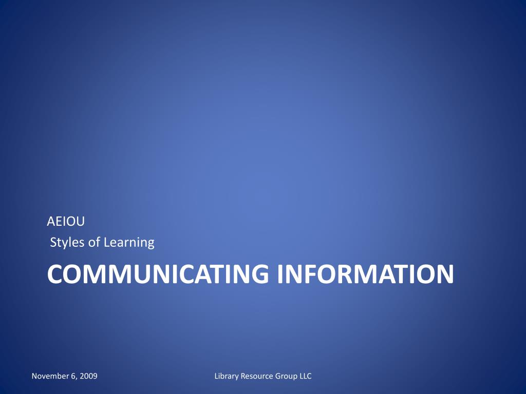 AEIOU Styles of Learning Communicating Information Library Resource Group LLC