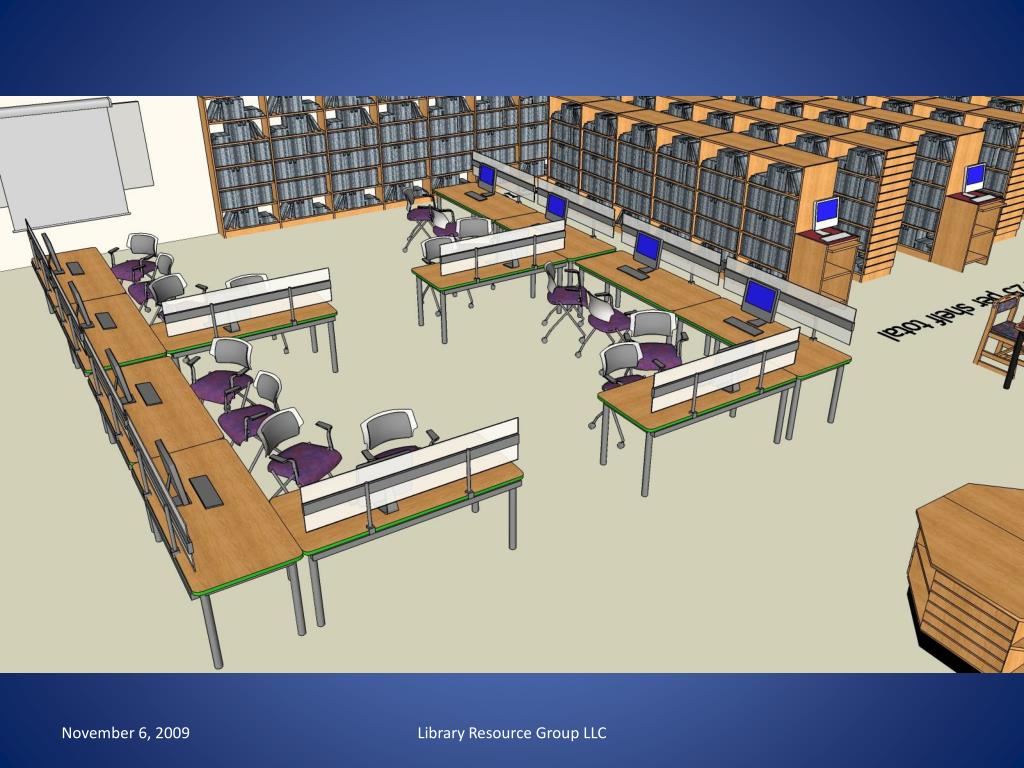 Learning/Information Commons • Computer workstation clusters • Collaborative learning spaces • Cafes • Gaming Environments • Presentation Support Centers or Multimedia Presentation Centers • Electronic Classroom • Digital Media Studios or Advanced Technology Labs Library Resource Group LLC