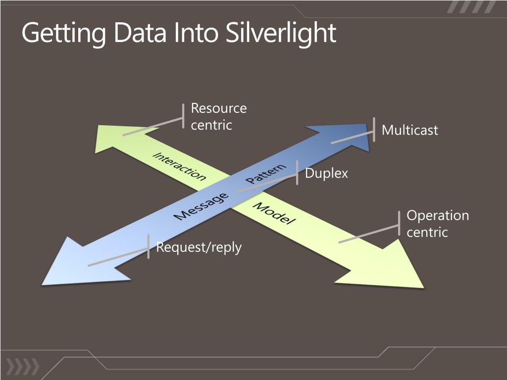 Getting Data Into Silverlight Message Pattern Interaction Model Resourcecentric Multicast Duplex Operationcentric Request/reply
