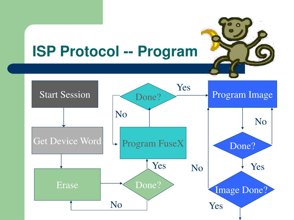 ISP Protocol -- Program Yes Start Session Program Image Done? No No Get Device Word Program FuseX Done? Yes Yes No Erase Done? Image Done? No Yes