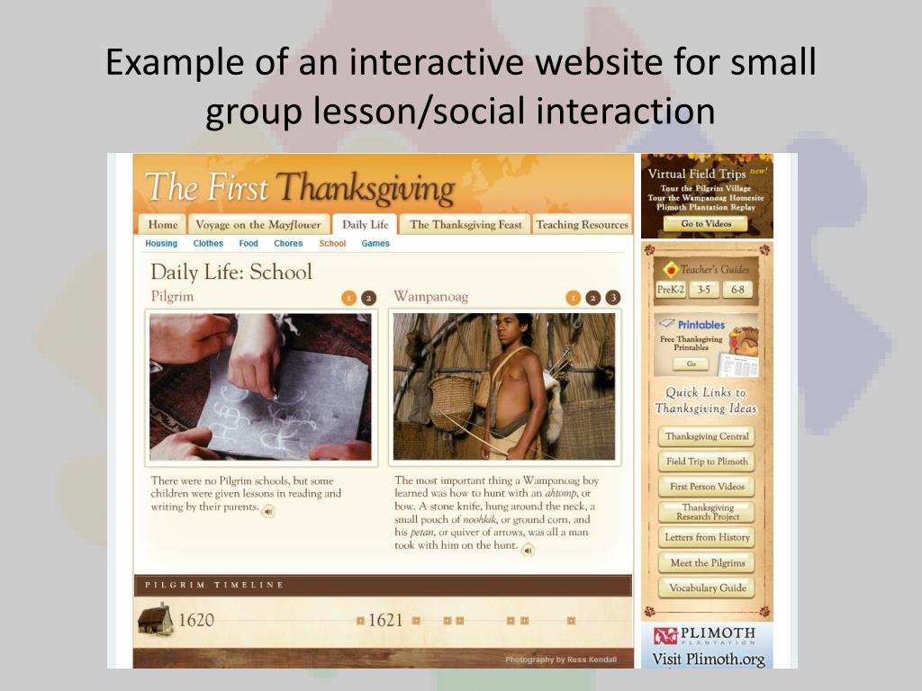 Smart Boards • Interactive Partner Activities • Interactive Group Activities • Social Skills Tools • Social Skills Games • Social Skills Lessons *Smart Boards allow students to not only interact with the technology, but also to interact with their peers.