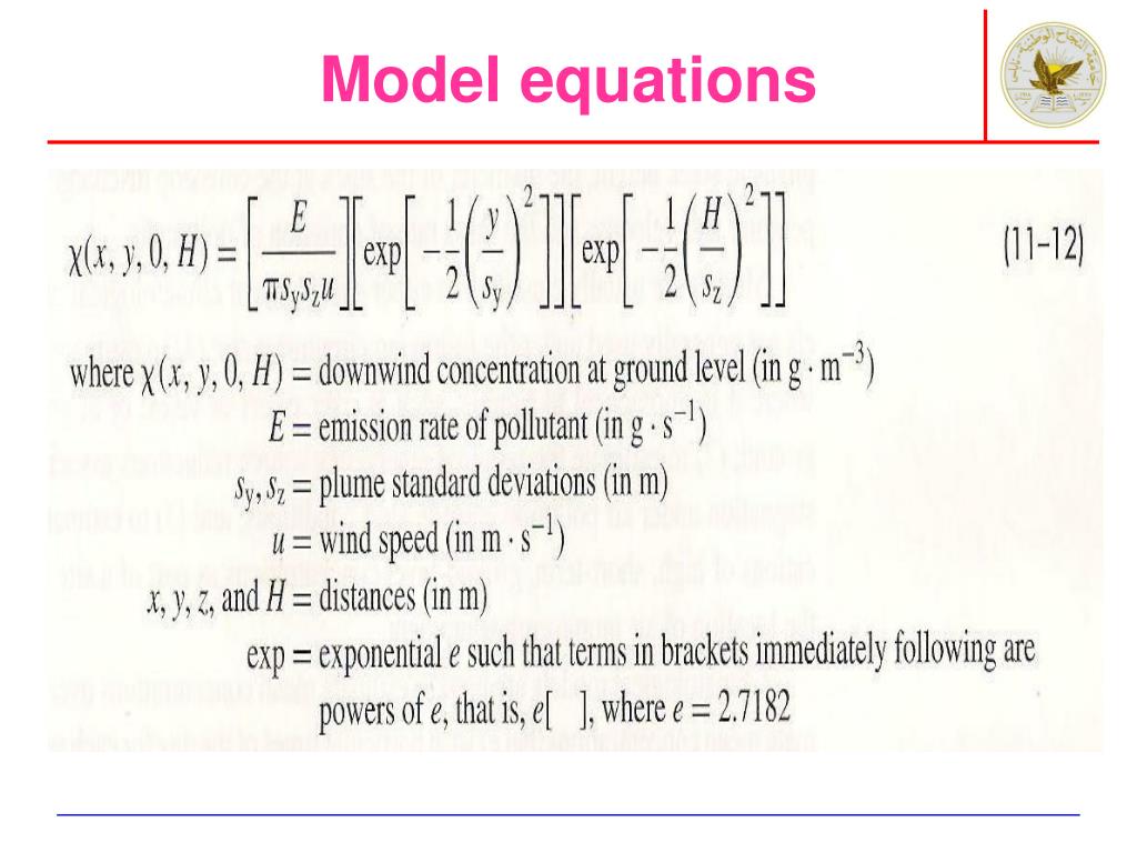 Dispersion Model • Description of meteorological transport and dispersion process that is quantified in term of source and meteorological parameter during a particular time • Concentration of particular pollutant for specific location and time • Short term model • Climatologically model