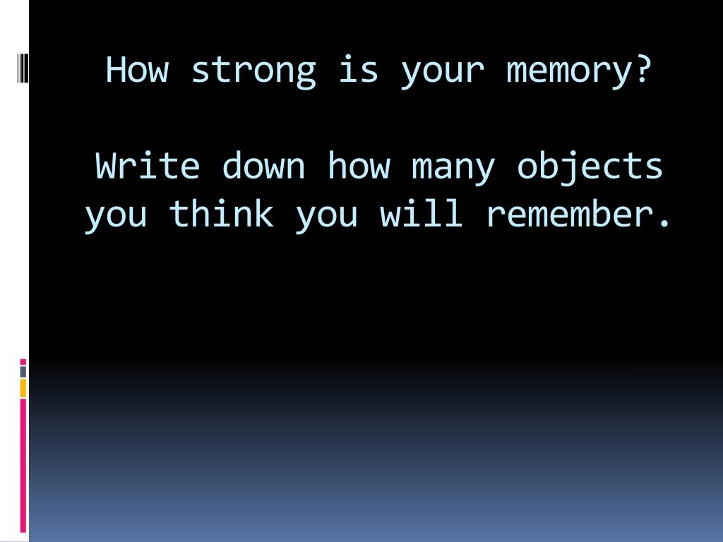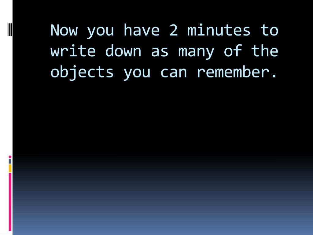 Now you have 2 minutes to write down as many of the objects you can remember.