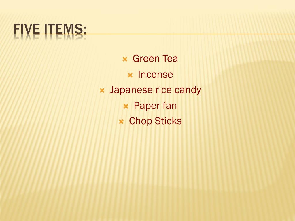 Green Tea Incense Japanese rice candy Paper fan Chop Sticks Five Items: