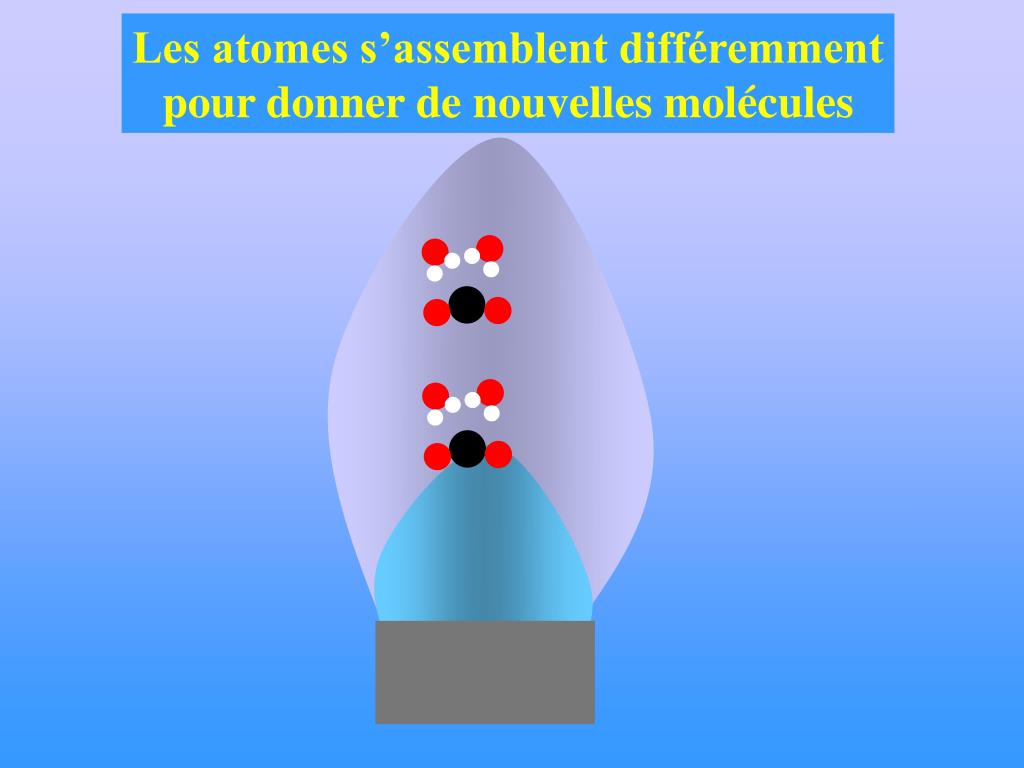 Les atomes s’assemblent différemment pour donner de nouvelles molécules