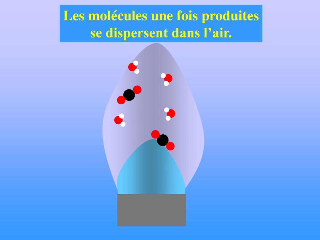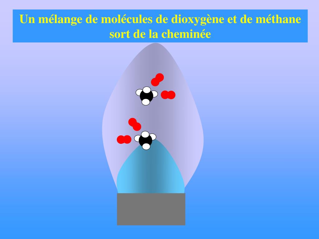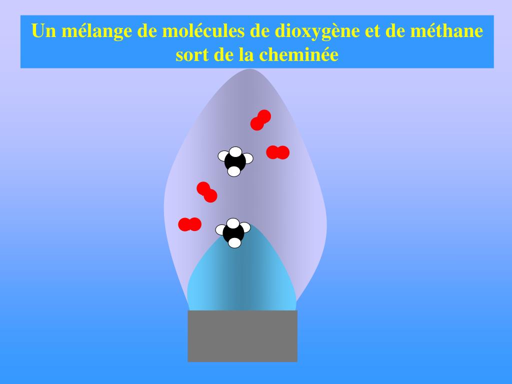 Un mélange de molécules de dioxygène et de méthane sort de la cheminée