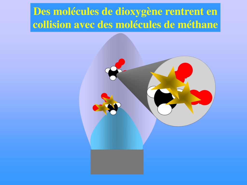 Des molécules de dioxygène rentrent en collision avec des molécules de méthane