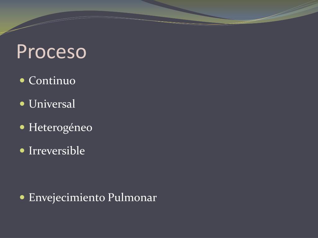 Proceso • Continuo • Universal • Heterogéneo • Irreversible • Envejecimiento Pulmonar