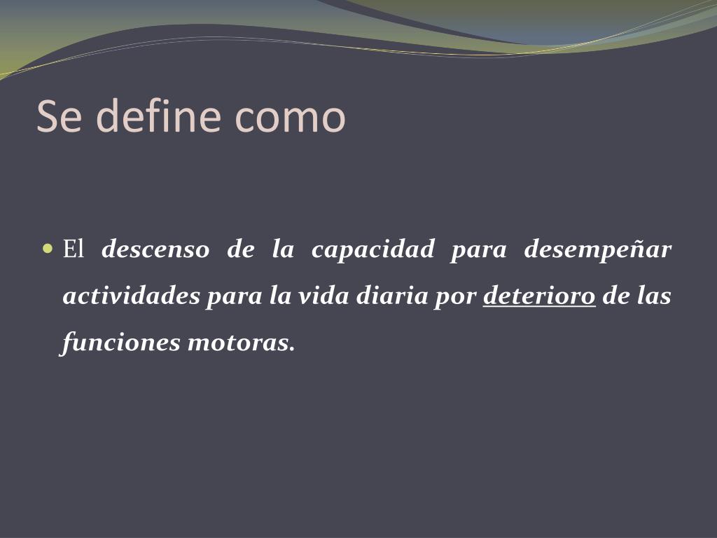Se define como • El descenso de la capacidad para desempeñar actividades para la vida diaria por deterioro de las funciones motoras.