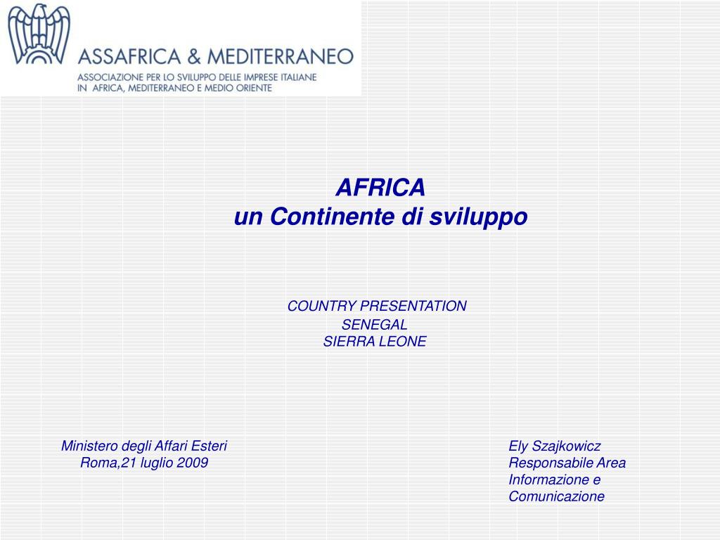 AFRICA un Continente di sviluppo. COUNTRY PRESENTATION SENEGAL SIERRA LEONE. Ministero degli Affari Esteri Roma,21 luglio 2009 . Ely Szajkowicz Responsabile Area Informazione e Comunicazione .