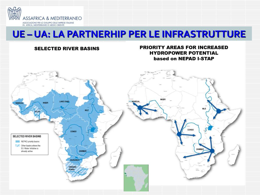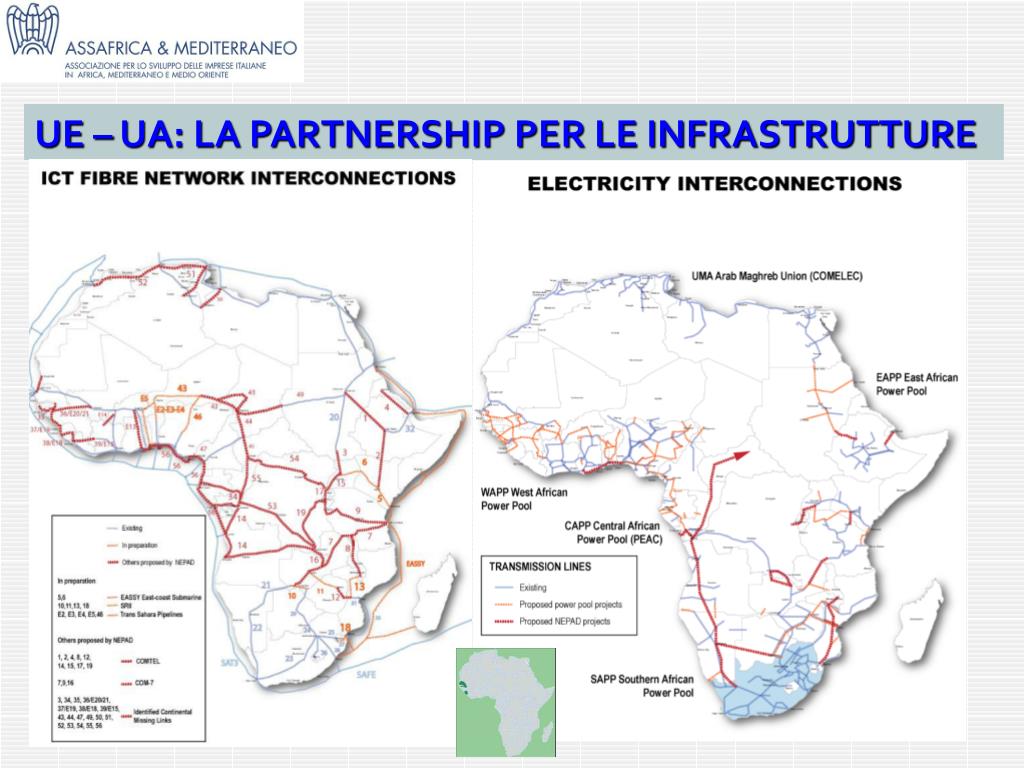 EU Strategy for Africa EU-Africa Partnership on Infrastructure TRASPORTI TERRESTRI ENERGIA ACQUA TECNOLOGIE DELL’INFORMAZIONE RETI DI COMUNICAZIONE 5.6 miliardi di euro a valere sul X FES 2008-2013
