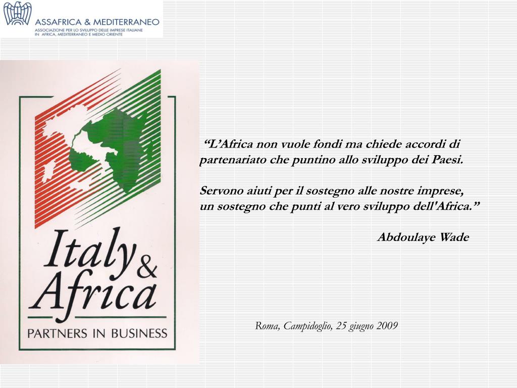 “L’Africa non vuole fondi ma chiede accordi di partenariato che puntino allo sviluppo dei Paesi. Servono aiuti per il sostegno alle nostre imprese, un sostegno che punti al vero sviluppo dell'Africa.” Abdoulaye Wade Roma, Campidoglio, 25 giugno 2009