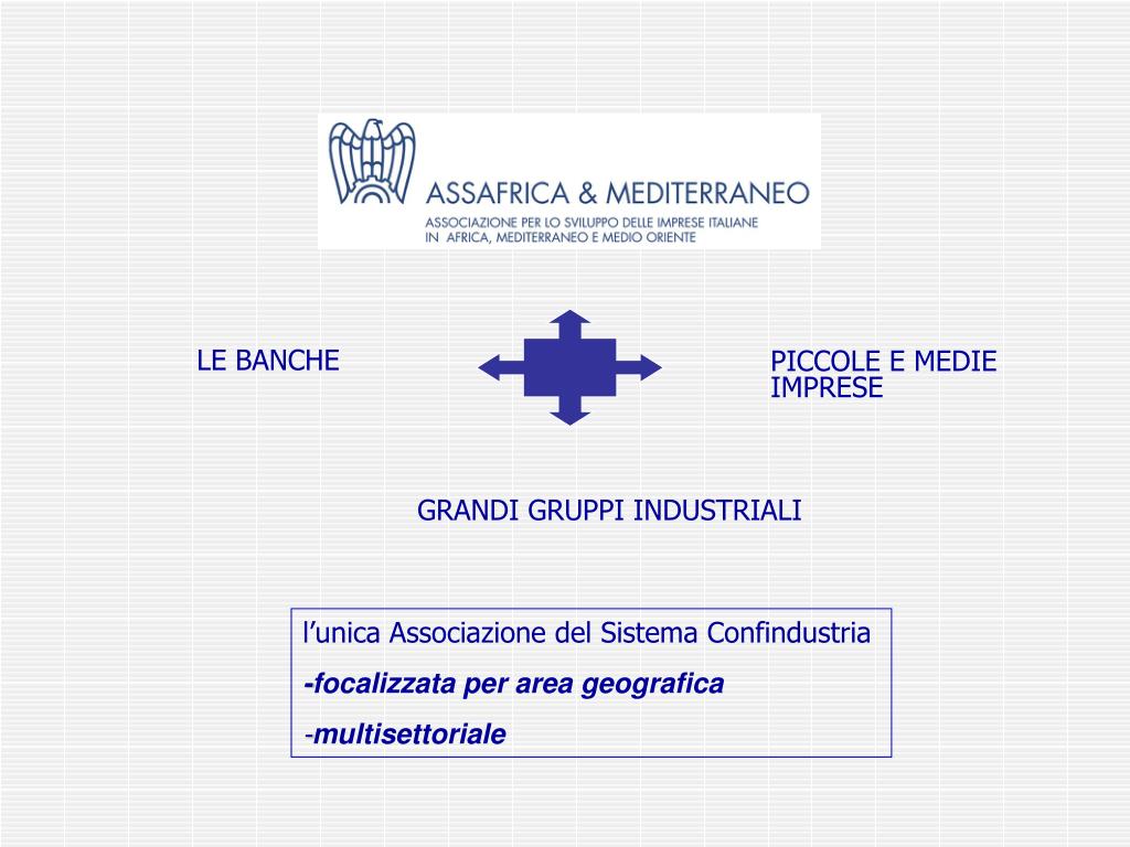 LE BANCHE PICCOLE E MEDIE IMPRESE GRANDI GRUPPI INDUSTRIALI l’unica Associazione del Sistema Confindustria -focalizzata per area geografica -multisettoriale