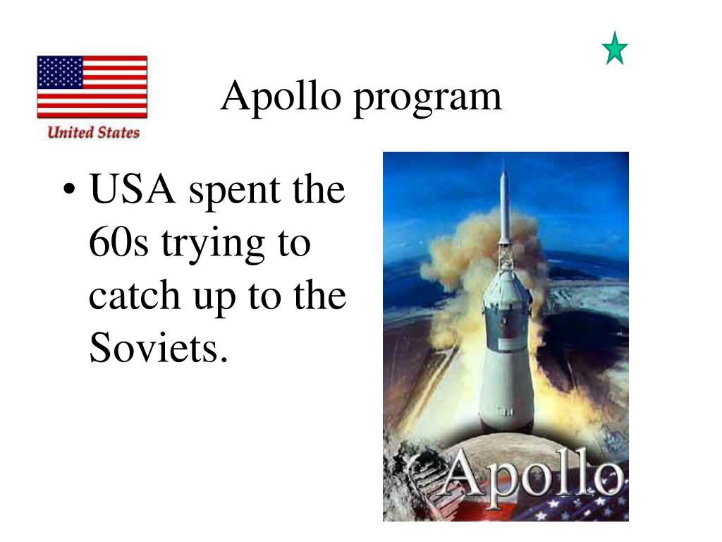Apollo program • USA spent the 60s trying to catch up to the Soviets.