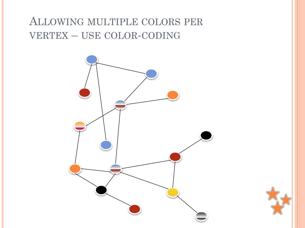 The problem Input: • Graph G=(V,E) , |V|=n, |E|=m • Color set C={1,2,...,k} • A function c: VC assigning v the color c(v).