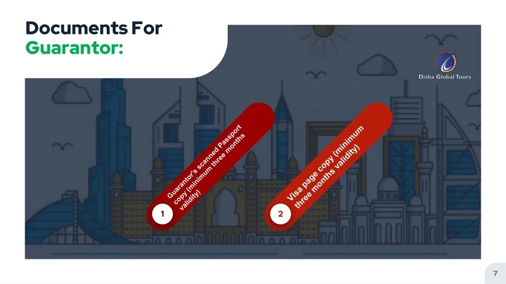 Documents For Guarantor: • Visa page copy (minimum three months validity) • Guarantor's scanned Passport copy (minimum three months validity) 1 2