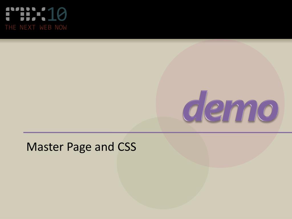 Resources • Starter.master: http://bit.ly/cKDYMi • SharePoint Examples: http://www.wssdemo.com • SharePoint 2010 VHD: http://blogs.msdn.com/pstubbs/archive/2010/01/26/download-the-sharepoint-2010-vhd.aspx