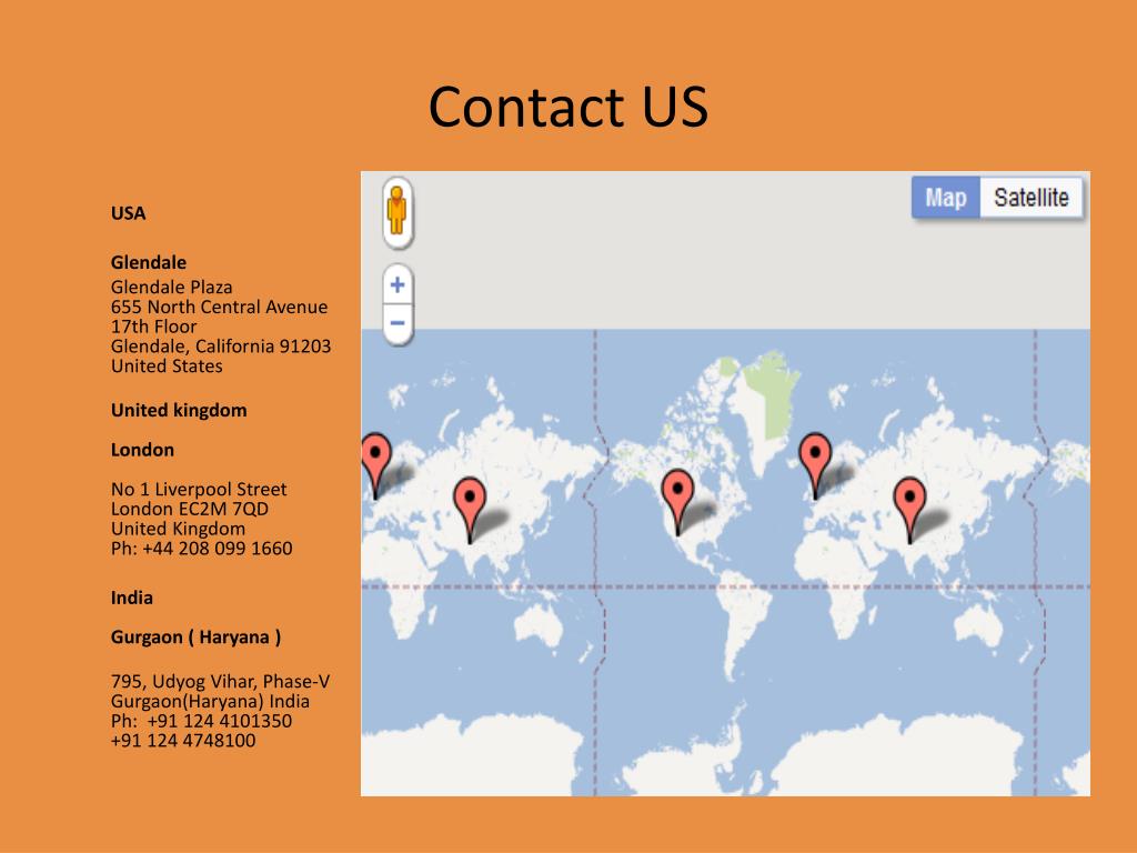 Contact US USA Glendale Glendale Plaza655 North Central Avenue17th FloorGlendale, California 91203United States United kingdomLondonNo 1 Liverpool Street London EC2M 7QD United Kingdom Ph: +44 208 099 1660 IndiaGurgaon ( Haryana ) 795, UdyogVihar, Phase-V Gurgaon(Haryana) India Ph: +91 124 4101350 +91 124 4748100