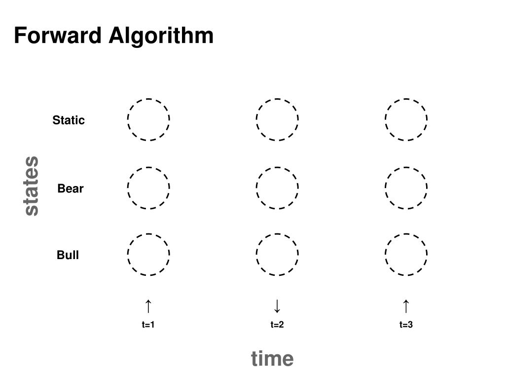 Forward Algorithm Static states Bear Bull ↑ ↓ ↑ t=1 t=2 t=3 time