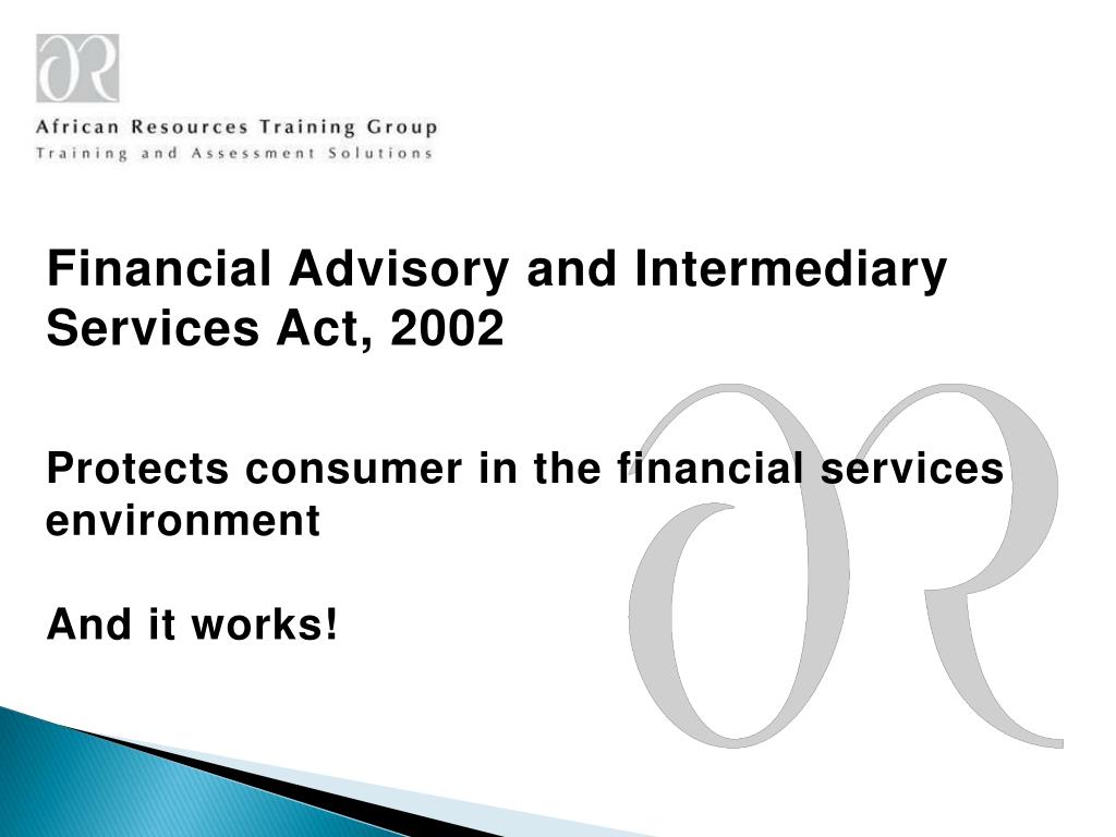 Financial Advisory and Intermediary Services Act, 2002 Protects consumer in the financial services environment And it works!