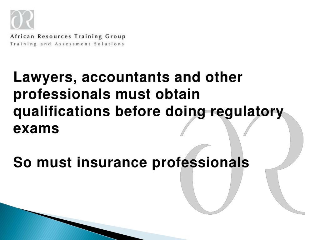 Lawyers, accountants and other professionals must obtain qualifications before doing regulatory examsSo must insurance professionals