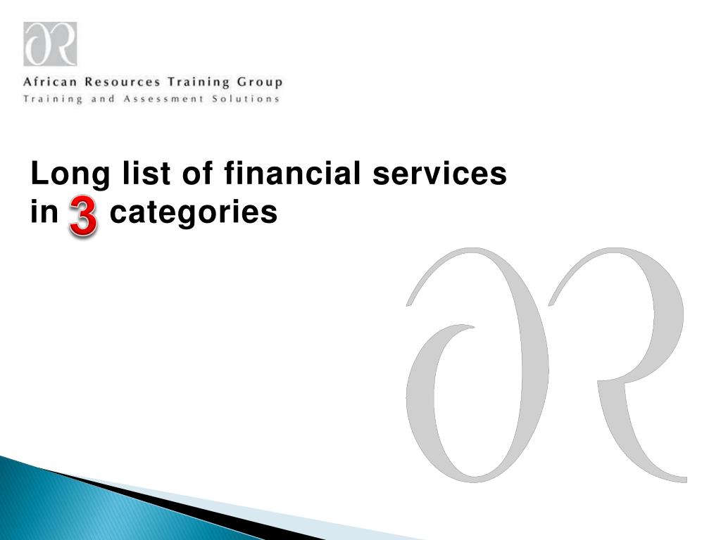 Long list of financial services in categories 3