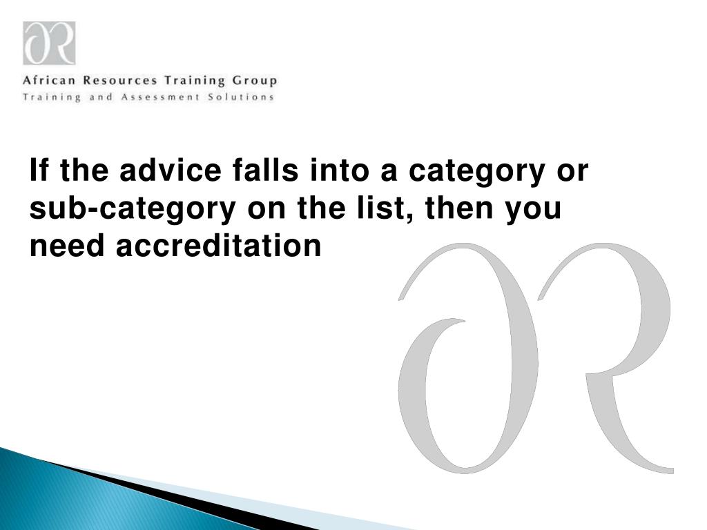 If the advice falls into a category or sub-category on the list, then you need accreditation
