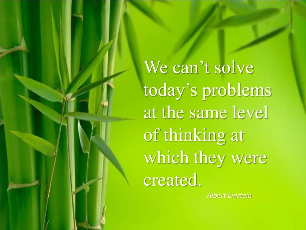 We can’t solve today’s problems at the same level of thinking at which they were created. Albert Einstein