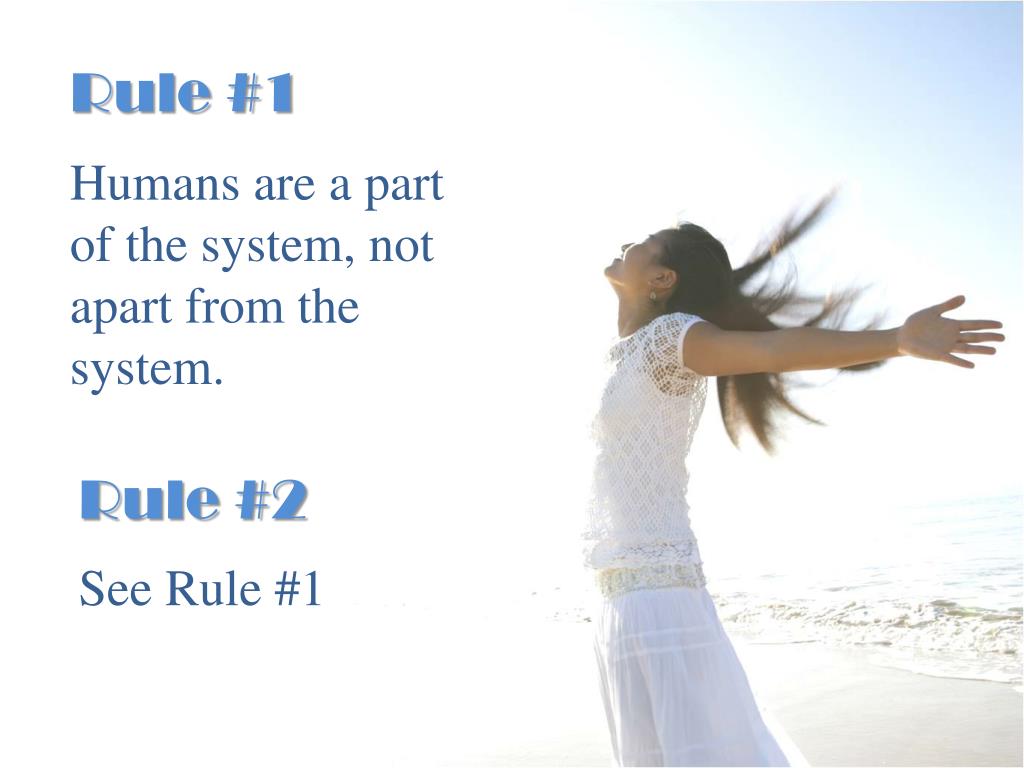 Rule #1 Humans are a part of the system, not apart from the system. Rule #2 See Rule #1