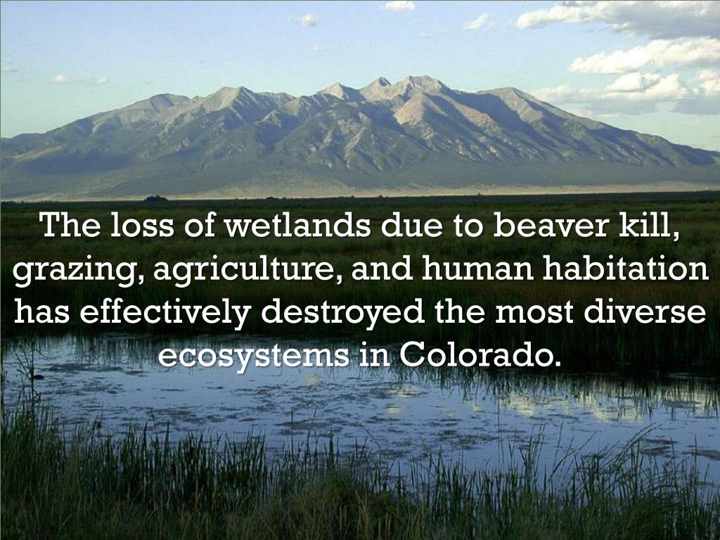 The loss of wetlands due to beaver kill, grazing, agriculture, and human habitation has effectively destroyed the most diverse ecosystems in Colorado.