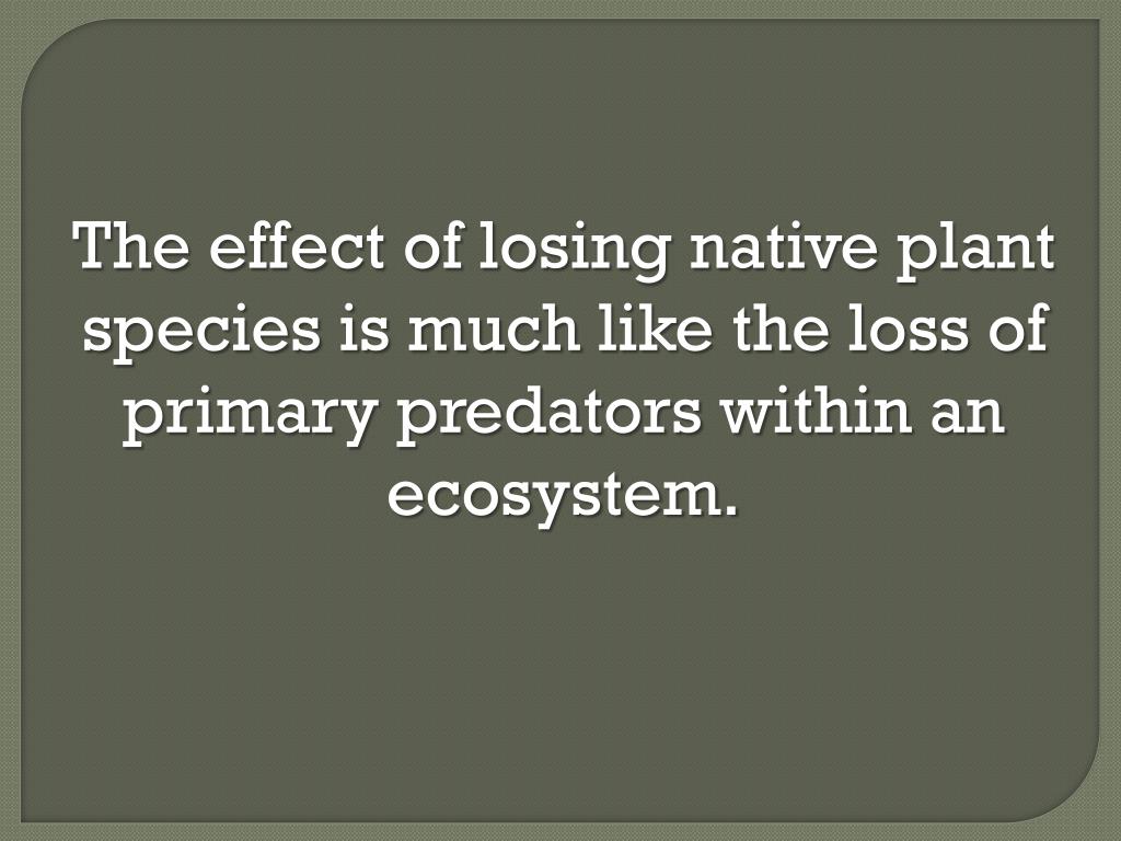 The effect of losing native plant species is much like the loss of primary predators within an ecosystem.