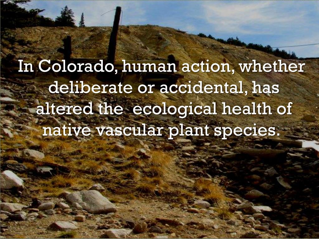 In Colorado, human action, whether deliberate or accidental, has altered the ecological health of native vascular plant species.