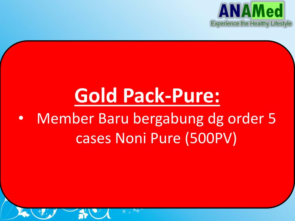 Gold Pack-Pure: • Member Baru bergabung dg order 5 cases Noni Pure (500PV)