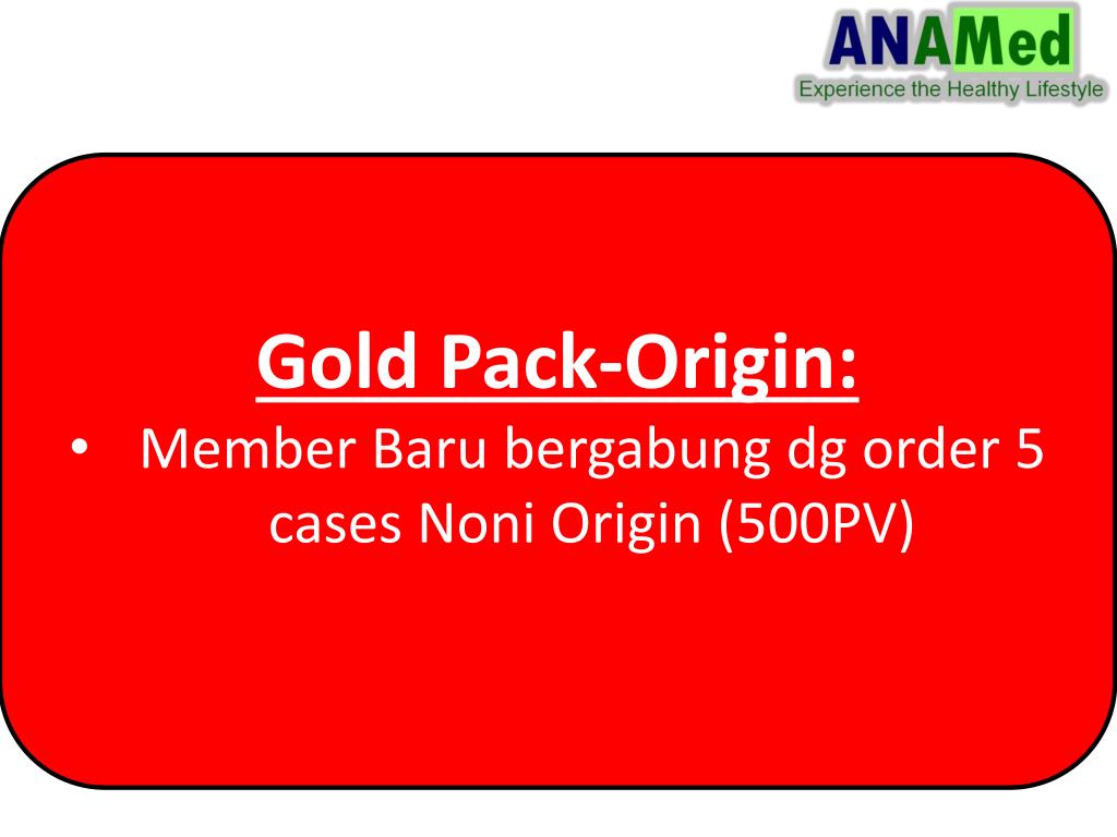 Gold Pack-Origin: • Member Baru bergabung dg order 5 cases Noni Origin (500PV)