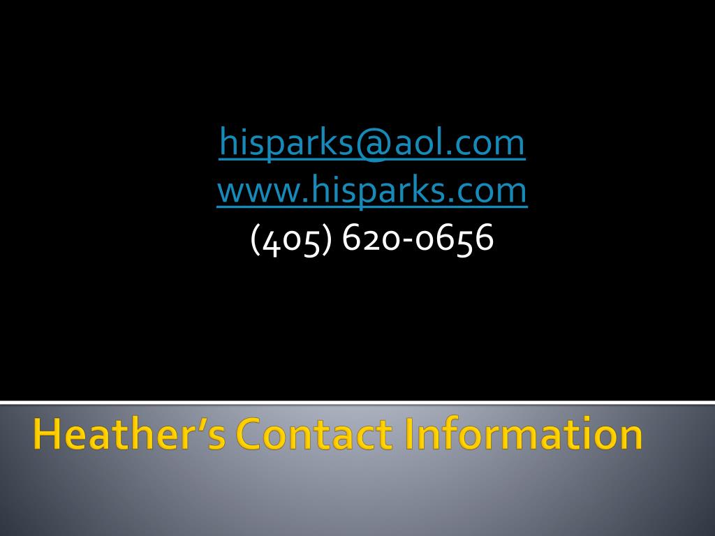hisparks@aol.com www.hisparks.com (405) 620-0656 Heather’s Contact Information