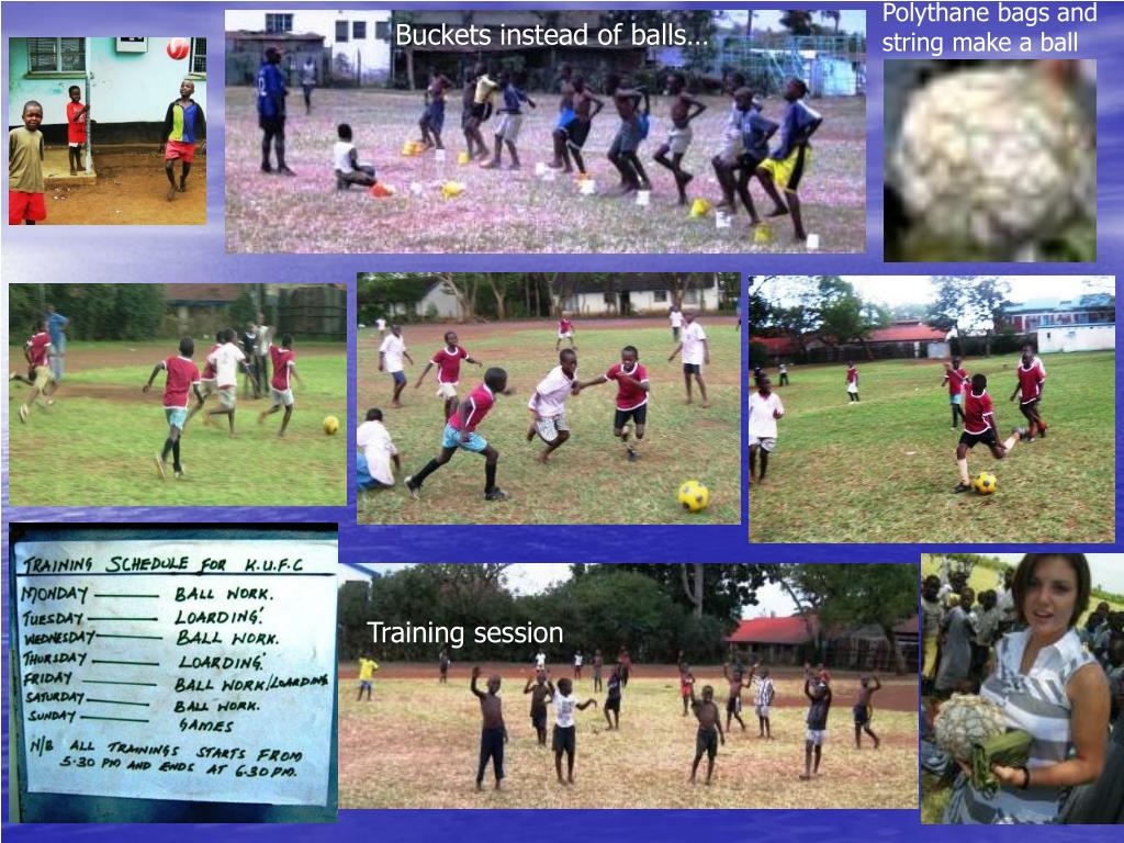 Polythane bags and string make a ball Buckets instead of balls… Training session