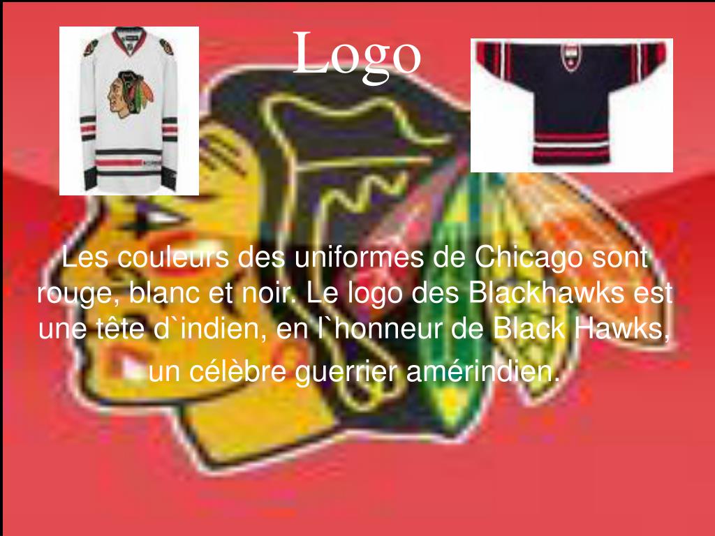 Logo Les couleurs des uniformes de Chicago sont rouge, blanc et noir. Le logo des Blackhawks est une tête d`indien, en l`honneur de Black Hawks, un célèbre guerrier amérindien.