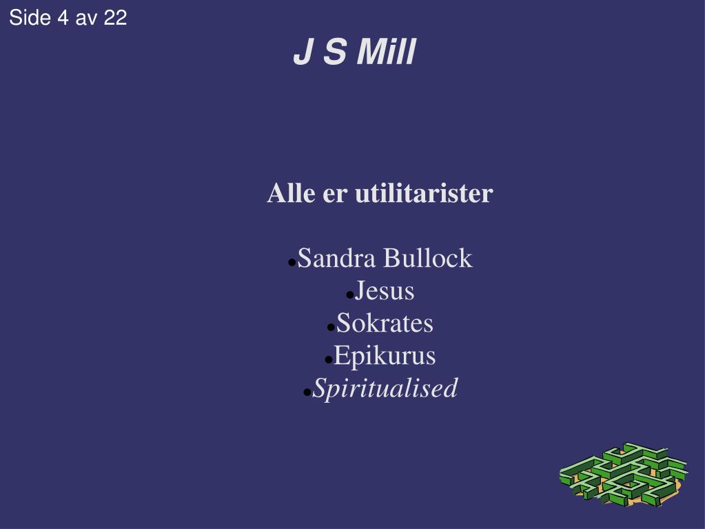 J S Mill Alle er utilitarister Sandra Bullock Jesus Sokrates Epikurus Spiritualised Side 4 av 22
