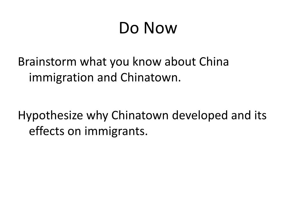 Do Now Brainstorm what you know about China immigration and Chinatown. Hypothesize why Chinatown developed and its effects on immigrants.