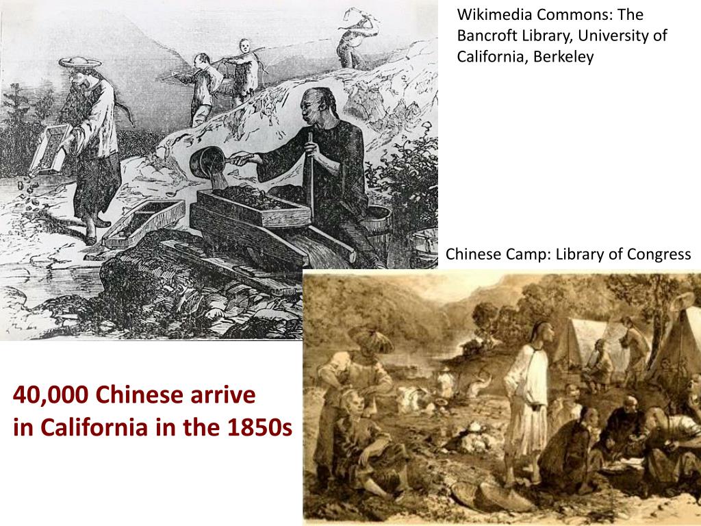 Wikimedia Commons: The Bancroft Library, University of California, Berkeley Chinese Camp: Library of Congress 40,000 Chinese arrive in California in the 1850s