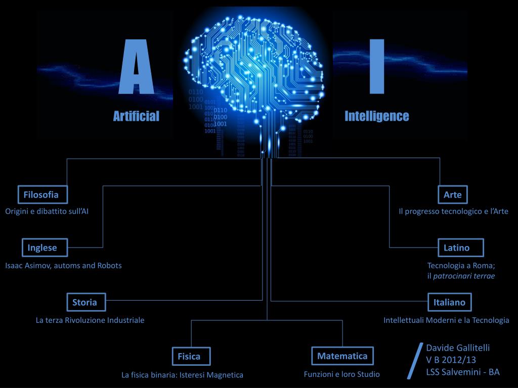 I Intelligence A Artificial Arte Filosofia Origini e dibattito sull’AI Il progresso tecnologico e l’Arte Inglese Latino Isaac Asimov, automs and Robots Tecnologia a Roma; il patrocinari terrae Storia Italiano La terza Rivoluzione Industriale Intellettuali Moderni e la Tecnologia / Davide Gallitelli V B 2012/13 LSS Salvemini - BA Matematica Fisica Funzioni e loro Studio La fisica binaria: Isteresi Magnetica