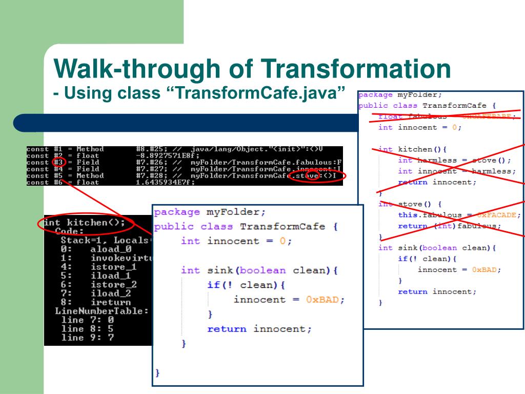 Walk-through of Transformation- Using class “TransformCafe.java”