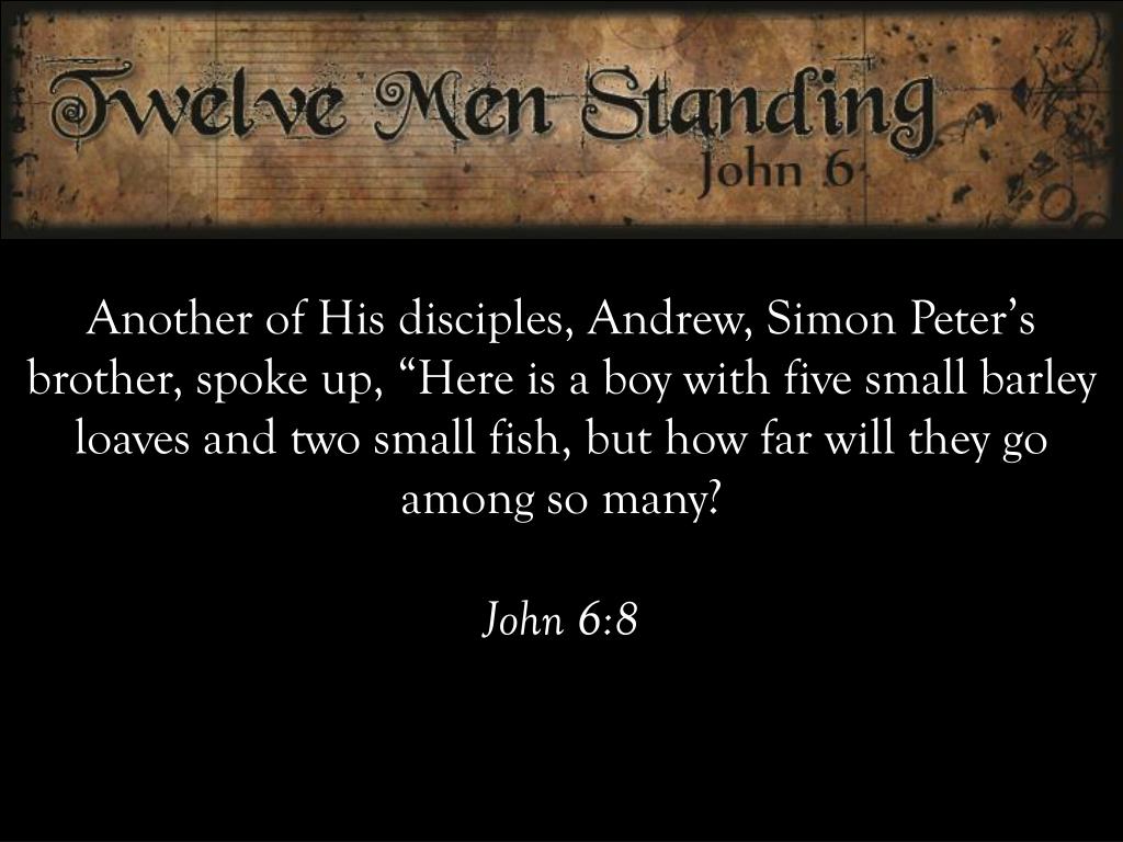 Another of His disciples, Andrew, Simon Peter’s brother, spoke up, “Here is a boy with five small barley loaves and two small fish, but how far will they go among so many? John 6:8