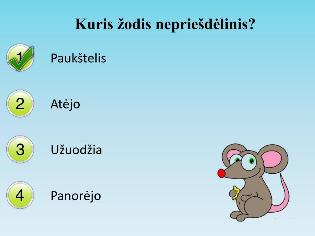 Kuris žodis nepriešdėlinis? Paukštelis Atėjo Užuodžia Panorėjo