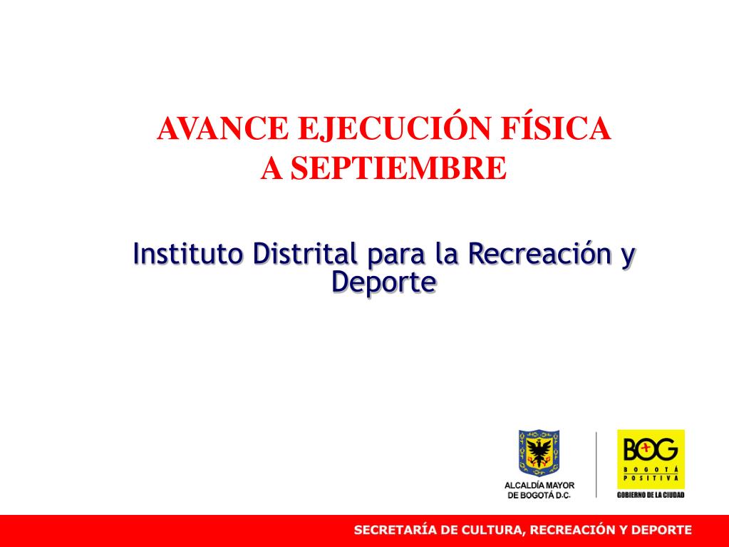 AVANCE EJECUCIÓN FÍSICA A SEPTIEMBRE Instituto Distrital para la Recreación y Deporte