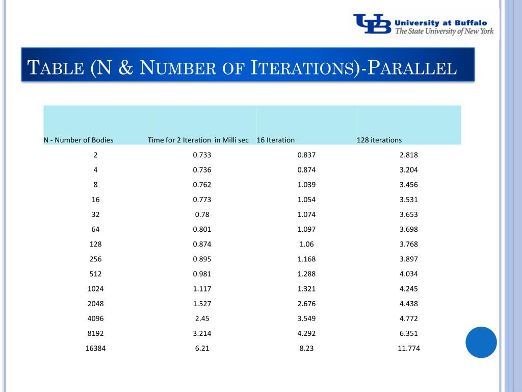 Analysis • We need to obtain the performance by • By varying the number of bodies N interacting • By Varying the number of iterations. • By varying the number of threads per block. • By varying the number of processors. • The number of threads per block can also be varied ,but the performance was better when I used p= 256 i.e 256 threads per block. • Number of Blocks = Number of Bodies / Number of threads