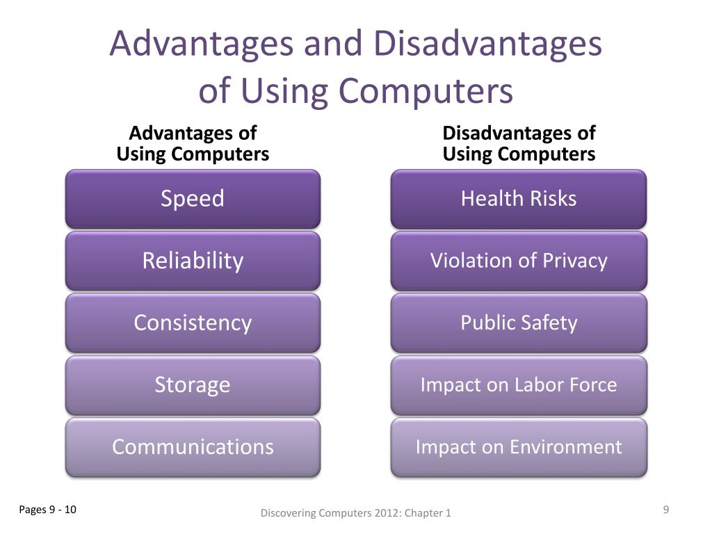 Advantages and Disadvantages of Using Computers Advantages of Using Computers Disadvantages of Using Computers Pages 9 - 10 Discovering Computers 2012: Chapter 1