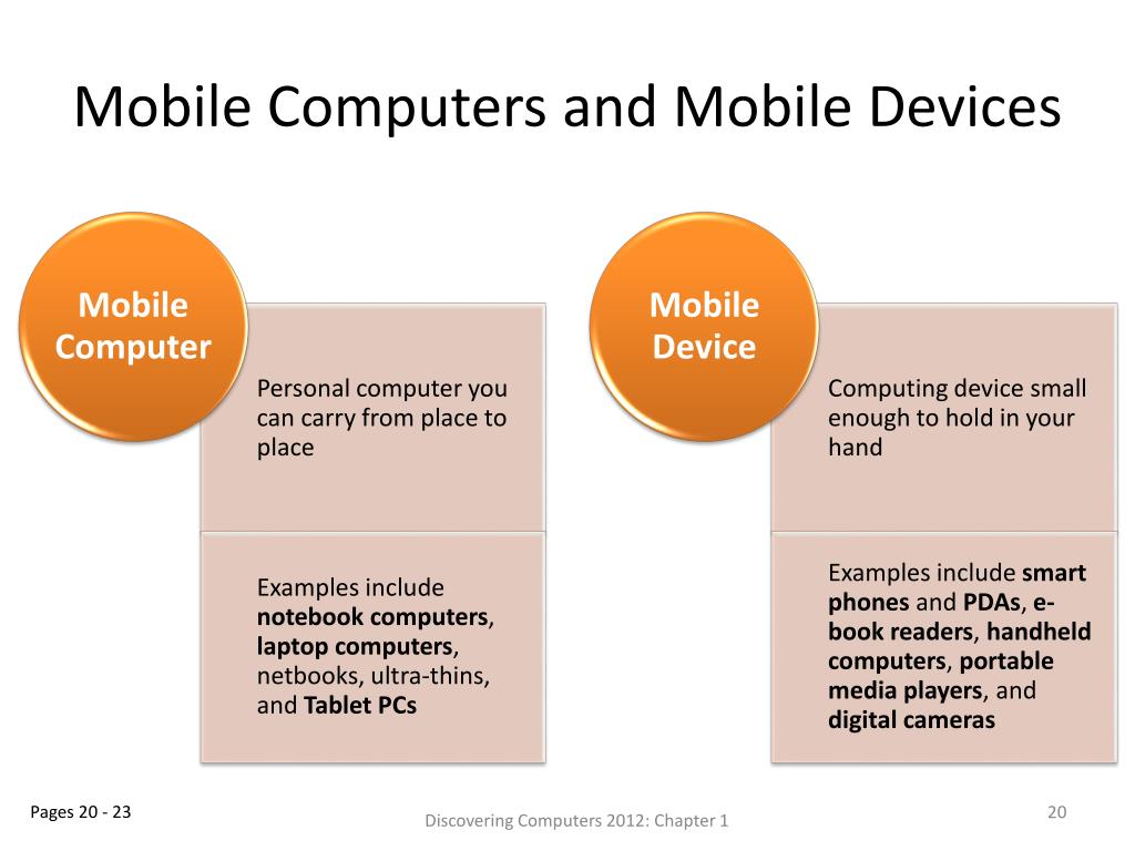 Mobile Computers and Mobile Devices Discovering Computers 2012: Chapter 1 Pages 20 - 23