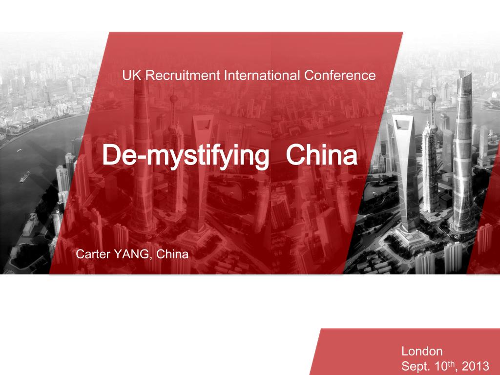 UK Recruitment International Conference. De-mystifying China. Carter YANG, China. Agenda. London Sept . 10 th , 2013. Agenda. China General Economy and Market. China Employment & Recruitment Market. Set Up Recruitment Business in China. 3 Cities over 20 Mio Population.